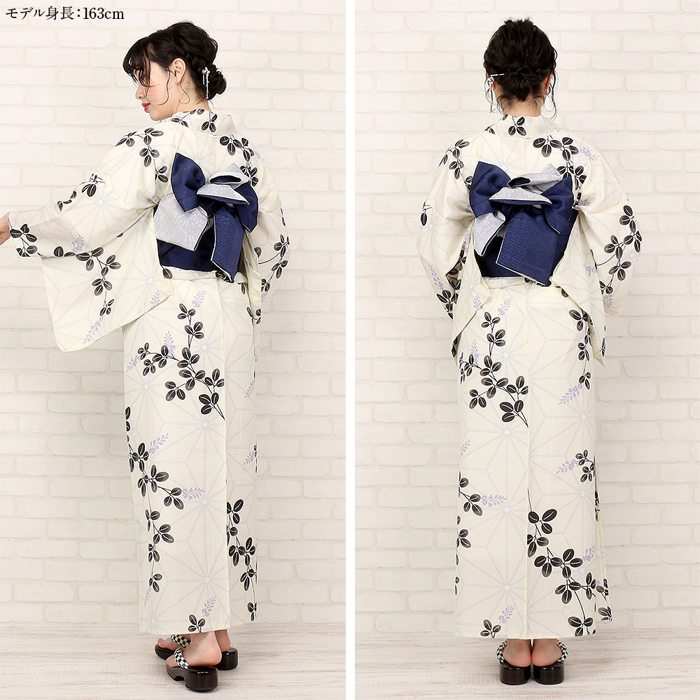 色・柄 クリーム / 麻の葉に萩 素 材 ポリエステル100%・セオアルファ サイズ 身丈:164.4cm / 裄:67.4cm / 袖丈:49cm / 前巾:24.8cm / 後巾:30.4cm 適応身長:155〜165cm前後 ご利用期間 3泊4日 (ご利用日2日前のお届けになります。