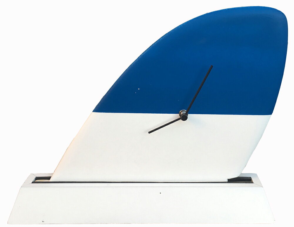 【時計】サーフィン フィン クロック ブルー & ホワイト/インテリア リビング 玄関 トイレ 部屋 プレゼント モダン おしゃれ 置き時計 棚飾り テーブル クロック 飾る Mサイズ 巣ごもり