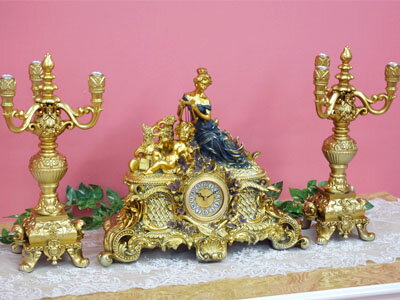 【送料無料】 ロココ クラシック仕様 卓上時計&キャンドルスタンド 3点セットクロック キャンドルスタンド 豪華な3点セット アンティーク風 ヨーロピアン ロココスタイル 輸入 豪華 お洒落 ゴールド エレガント クラック仕上げ ロココ ロココ調