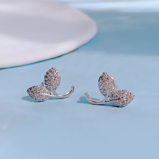 Leafyリーフィ☆新作☆S925【セカンドピアスとしてもオススメ!軸太0.9mm】ジルコニアが煌く双葉モチーフピアス 1ペア 可愛らしさと生命力溢れたピアス レディース プレゼント 普段使い お出かけ パーティー フォーマル 木の葉 若葉 リーフ 芽 息吹 シルバー 銀 x09057a