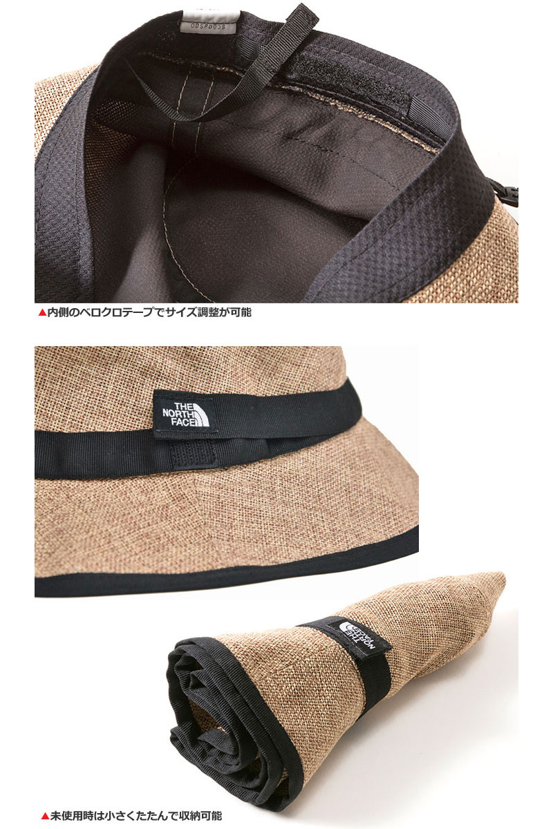 アウトドアから普段使いまで幅広く活用できます 素材NORTHTECH Cloth Straw(ポリエステル100%) 生産国中国製 主な仕様・内側のベルクロテープでサイズ調整が可能 ・ウォッシャブル ・取り外し可能なあご紐 ・ロゴピスネーム ・ロールストラップ サイズ 単位 cm 頭周り つばの長さ KM 50-53 6 KL 54-56 6.5 スタッフが試着した感想をご紹介 ▼女性スタッフ(頭周り:約54cm)身長153cm/標準体型成人女性でも私の場合、Lサイズが調整なしで丁度良かったです。